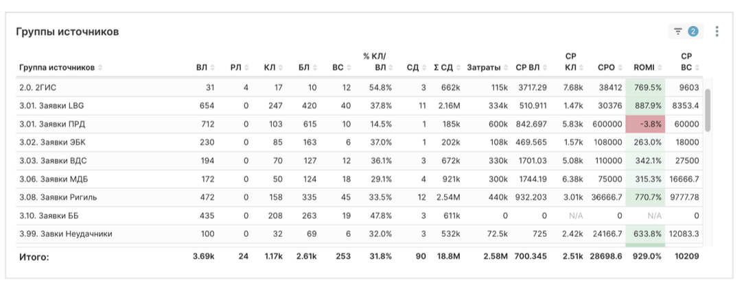 • Получена точная стоимость лида и сделки по всем источникам для оптимального распределения рекламного бюджета